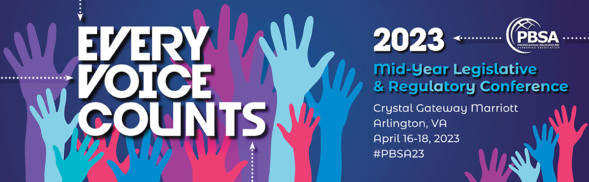 The PBSA 2023 Advocacy Day will be held in person immediately following the PBSA 2023 Mid-Year Legislative & Regulatory Conference on Wednesday, April 19, 2023. Members are encouraged to join the PBSA to set their sights on Capitol Hill and work collectively to influence positive change for the background screening profession. Registration will be coming soon.